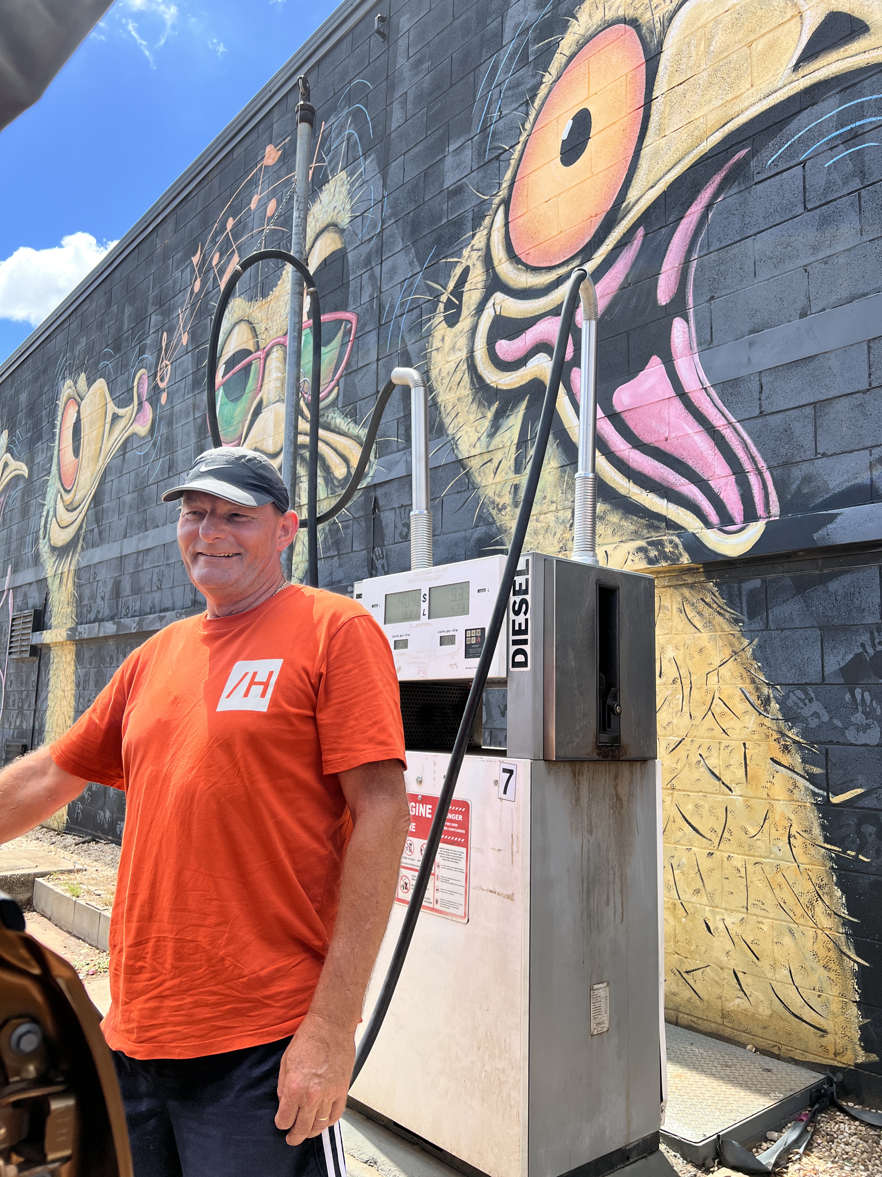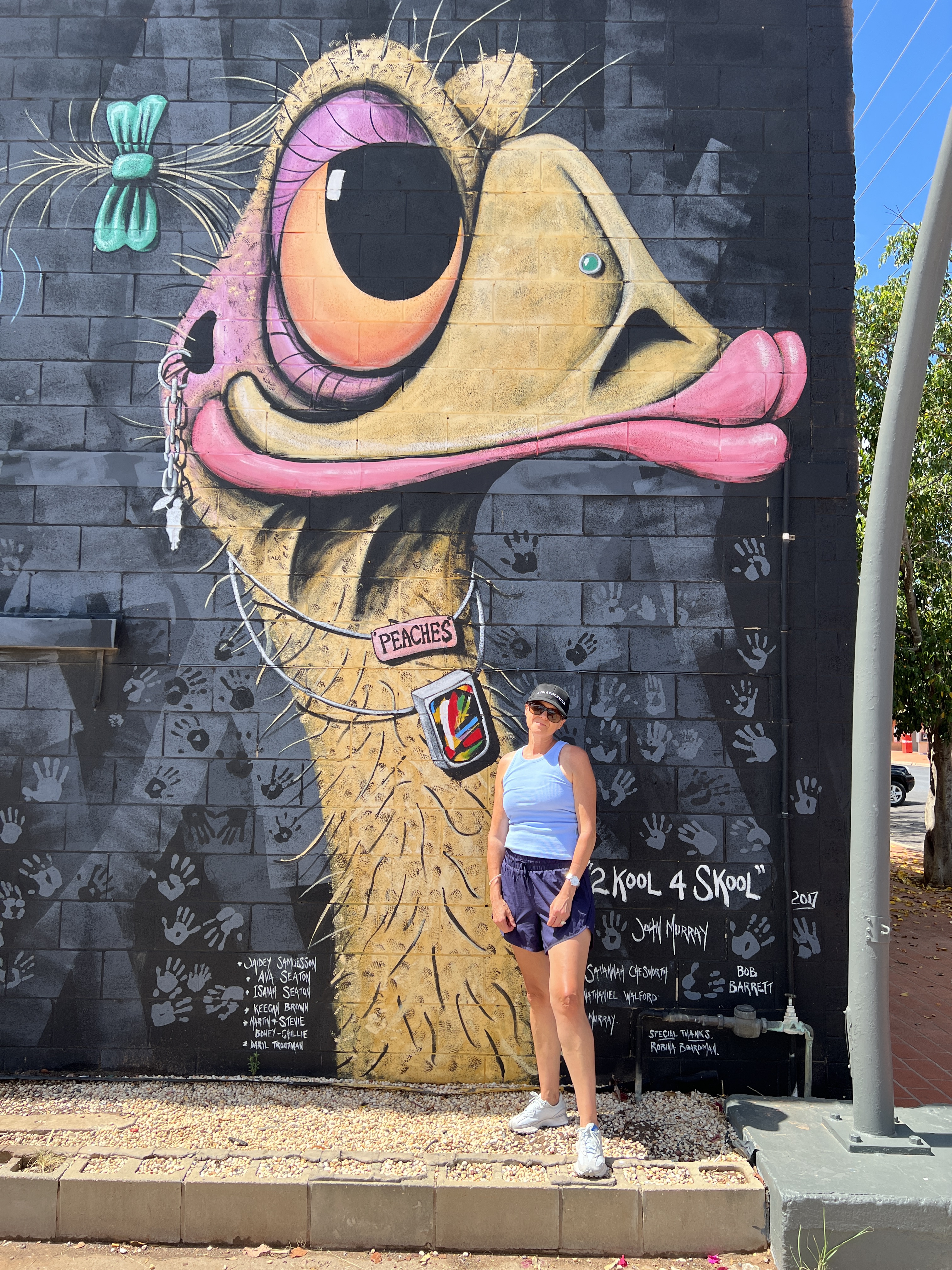 We drove around town, got some fuel (the murals are painted by a local artist, John Murray ,who has a gallery here) and went 10 kilometers back out of town where Stanley the emu stood welcoming visitors. We saw him yesterday but drove too fast past him to get a proper photo so going back today was on the agenda.
