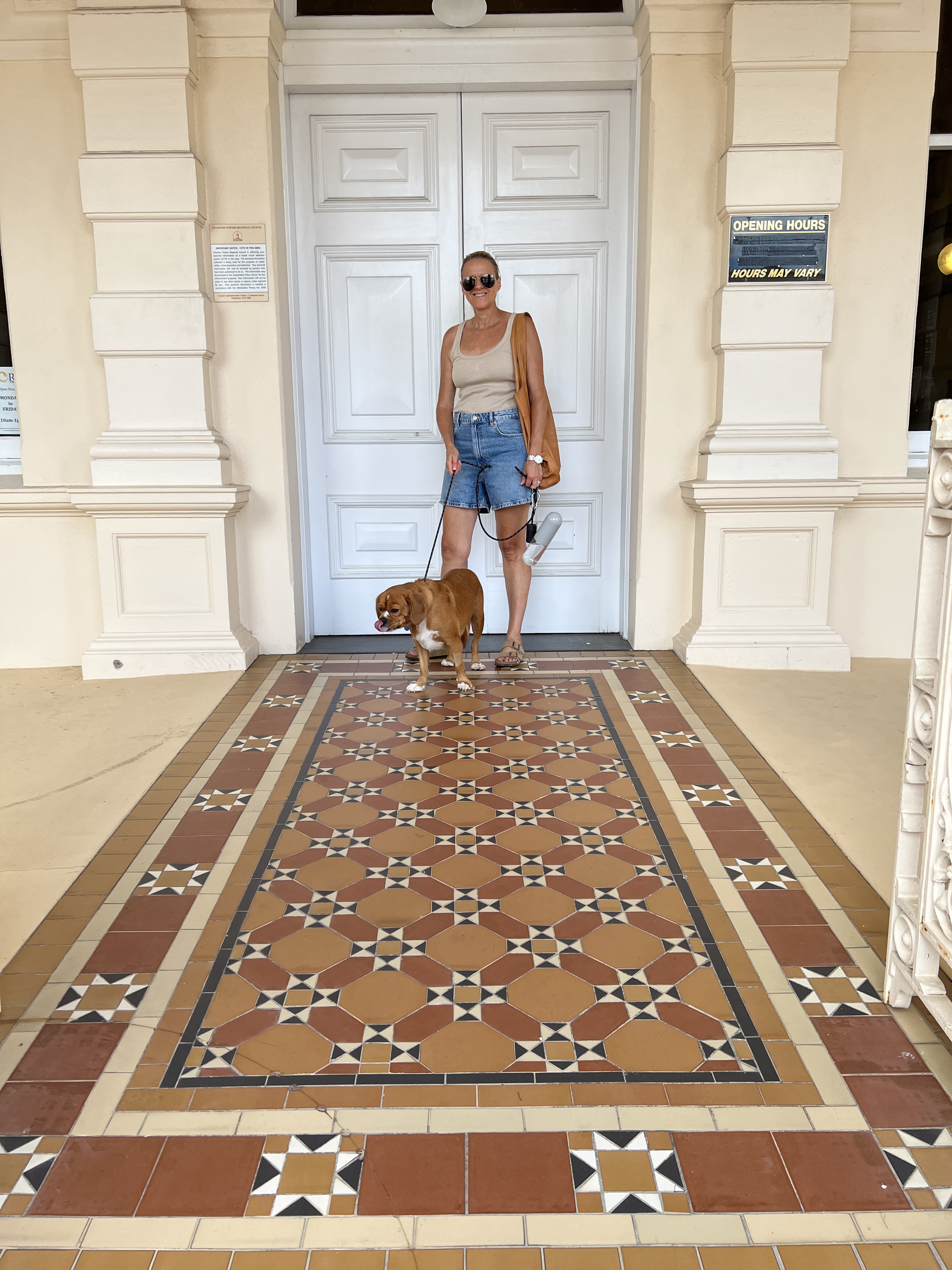 Having no choice but to head to the one cafe that was open, we had a coffee at the Stock exchange Cafe. It had a lovely patch of green grass out the back so The Captain could frollick after he had received his fair share of admiration and pats on his way through the arcade to reach it.