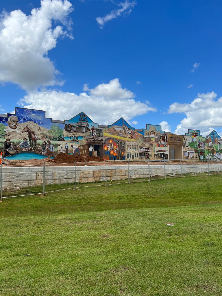 As we left, we saw a mural painted on the side of the new shops that depicted the history of Charters Towers. The whole tourist attraction was by no means finished but showed what an impressive effort was being made to attract visitors to the area to share in the history of the area. Really worth a visit.
