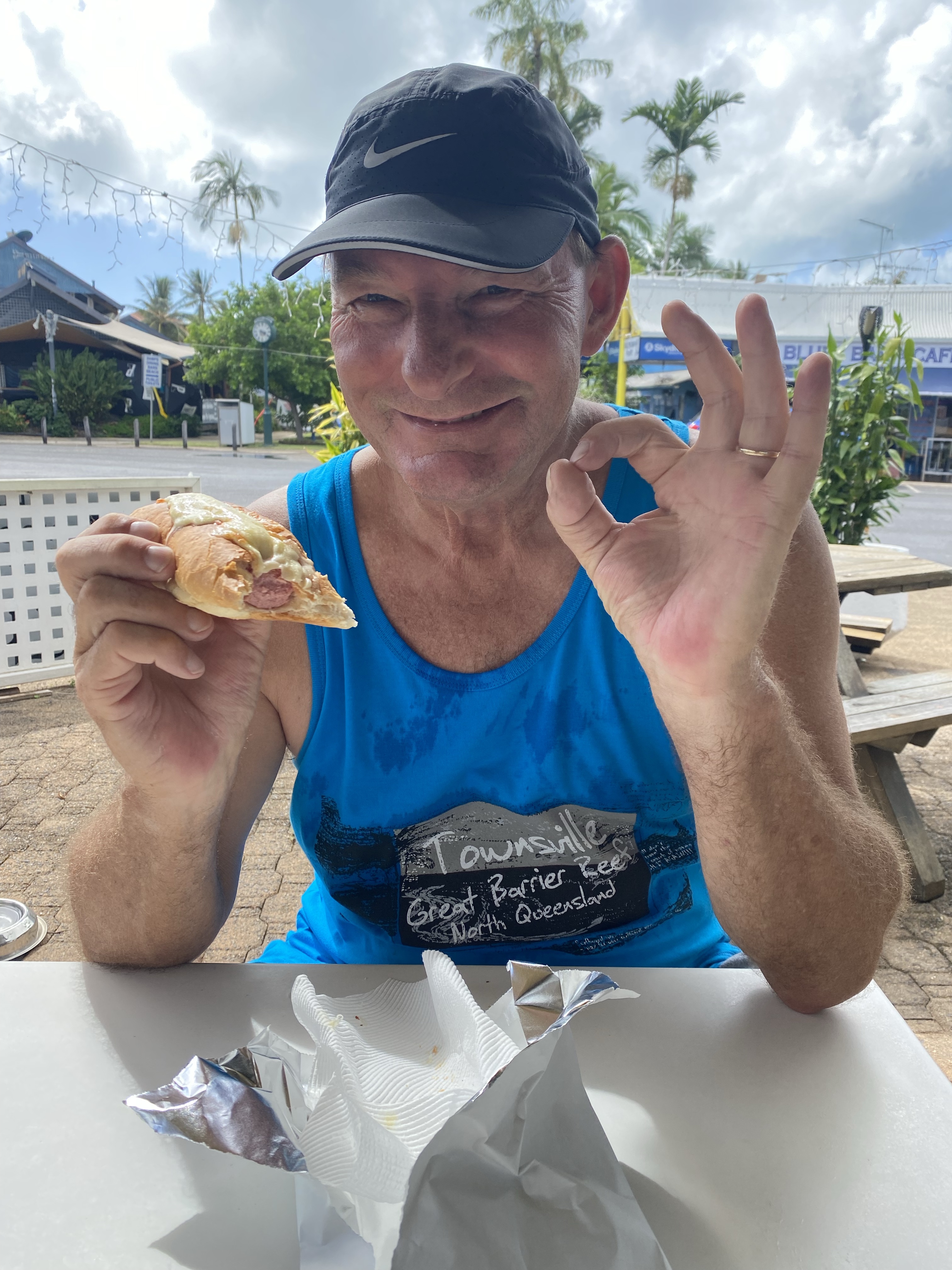 So we were having this discussion as we drove into Innisfail. Ray found a coffee shop and wanted to park somewhere, but it was very busy. I said let’s find the parking for caravans which was at the town park and I spotted the sign but Ray kept driving.
