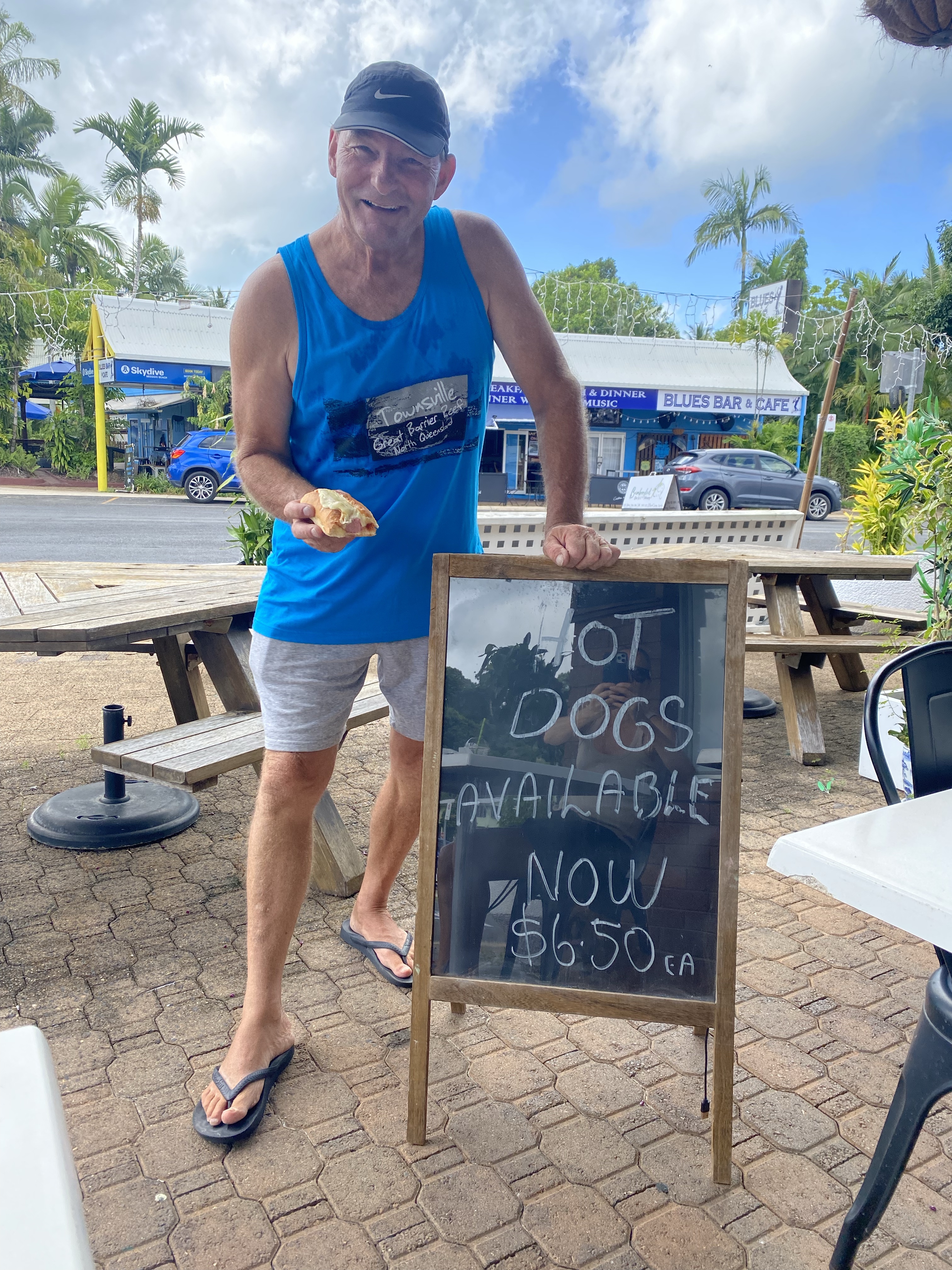 We drove into Mission Beach, parked and true to her word the cafe owner, Julie, opened her shop and made Ray his Hot Dog. Ray was beside himself. I was actually surprised that he didn’t order two!