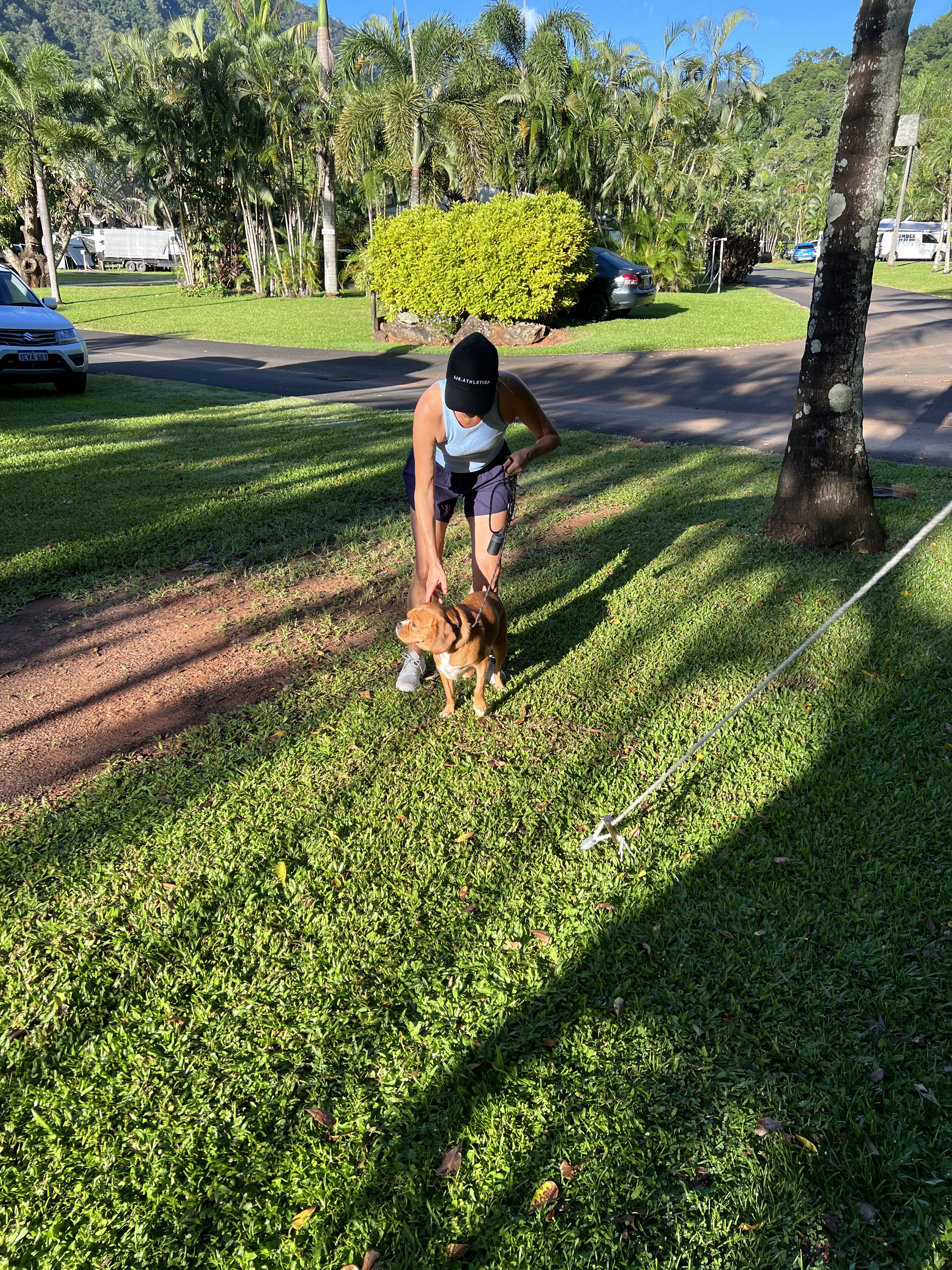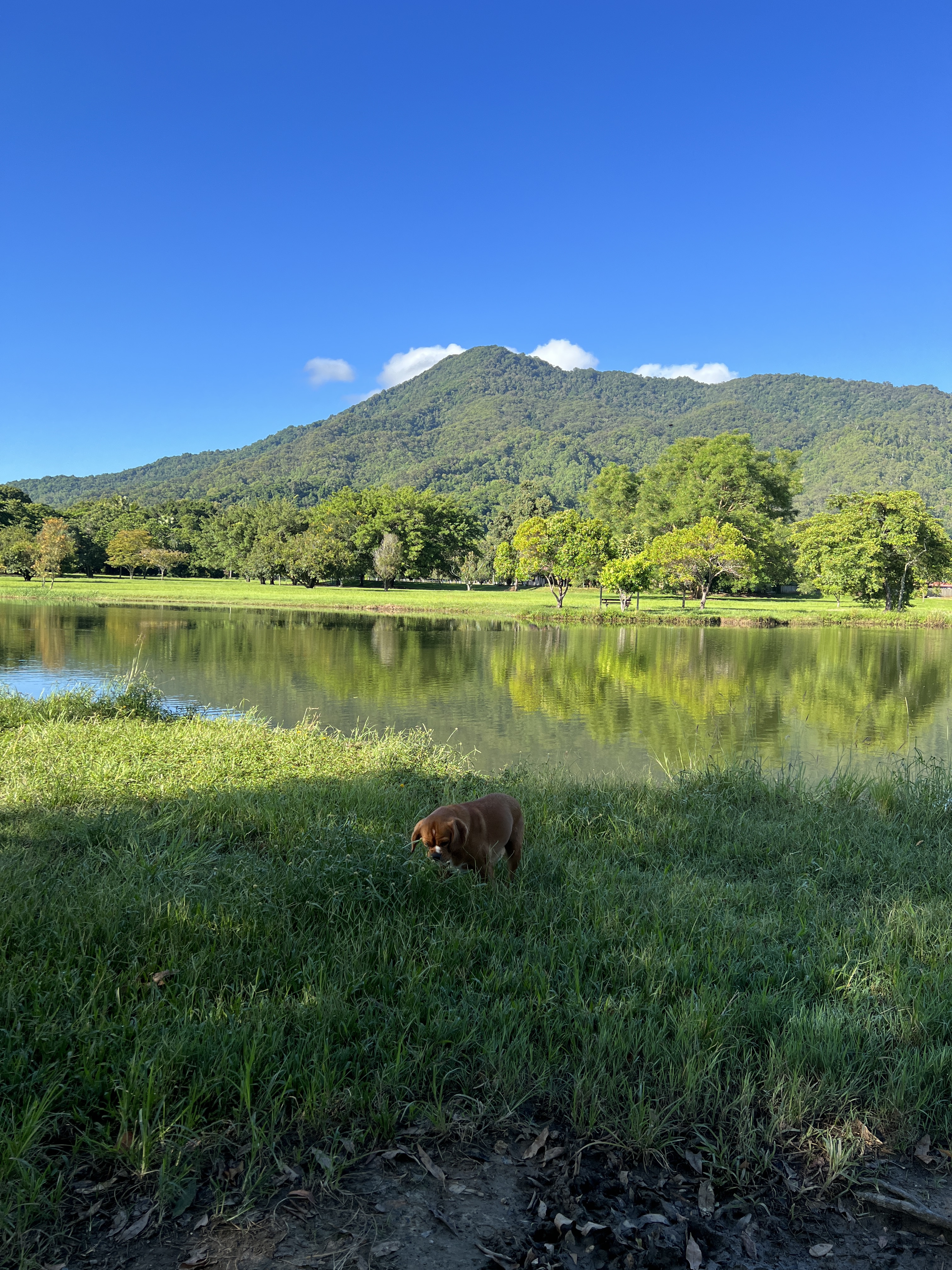 Henry and I got up and pulled our walking gear on. We decided to take advantage of the cooler air before it got too late. There is an off lead park around a lake just down the road and so we headed there. We met plenty of other dogs along the way who has the same idea and it was very pleasant walking along the Barron River that was flowing strong after the recent rains.