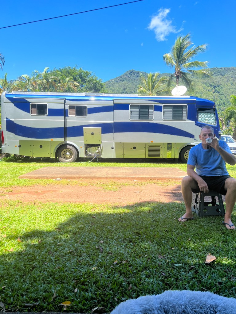 The morning was heating up quickly and by the time we got back Henry would have been walking for an hour. This is plenty of movement for his (still healing) knee. We returned to the van. As we arrived our neighbors who have travelled from Western Australia in a converted bus called out to me full of apologies.