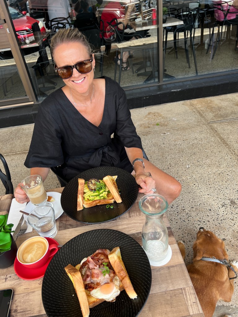 We went to another cafe that we went to when we were here in October. The waitress was very taken with Henry, bringing him the water bowl before we got anything. When the chef heard that there was a “cute” dog out the front, she volunteered to bring the extra carafe of water that we requested out personally. He was quite the pavement star.