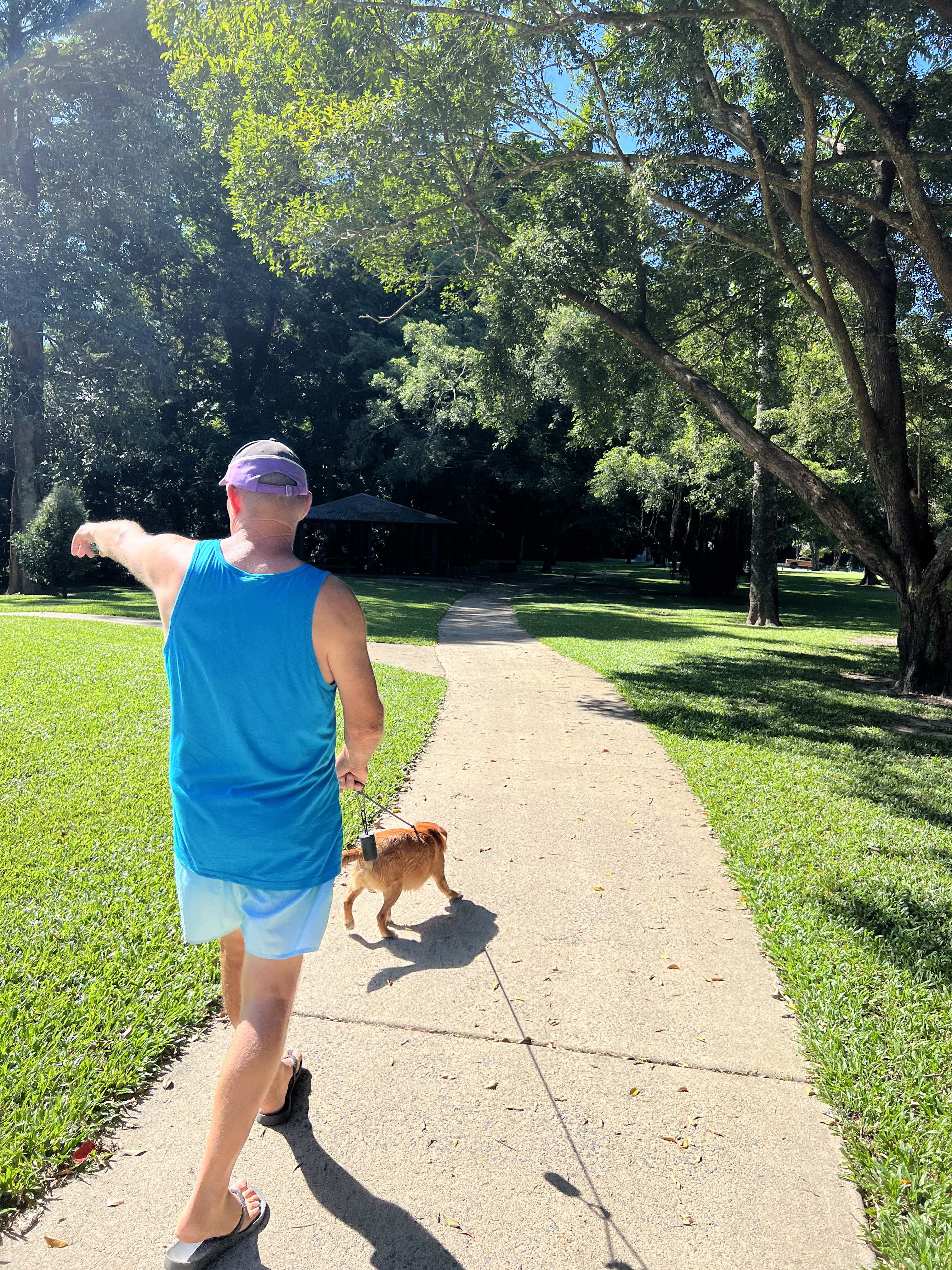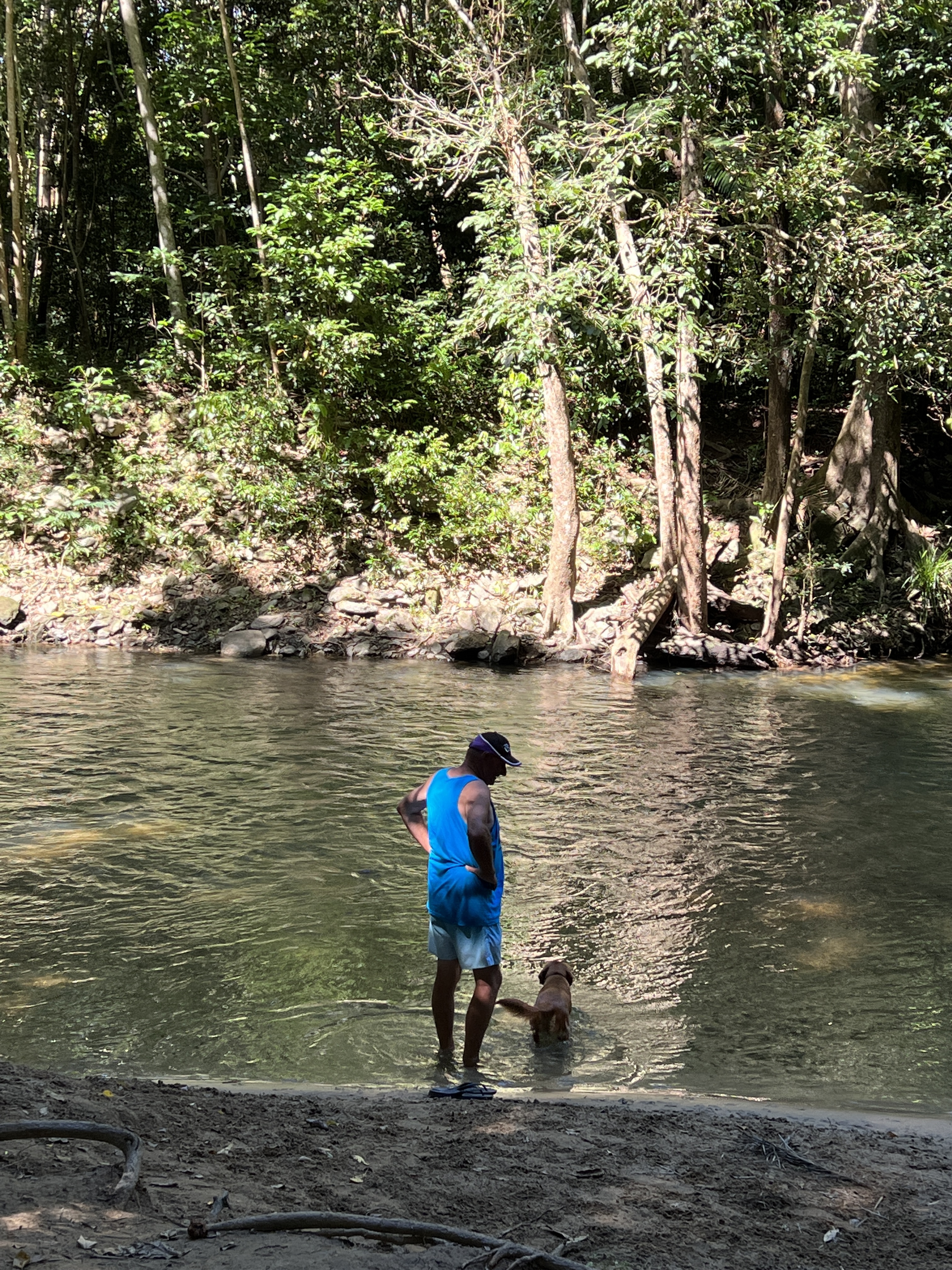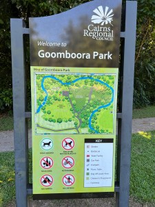 We wanted to take Henry to an off lead park for a run around. Goomboora Park has an off lead area within a park that is huge and also has swimming for dogs and humans. It is fresh water that comes down from the Crystal Cascades. The whole park has amazing facilities. Playground, toilets, huts that you can reserve and an amazing amount of open lush grass. It is tucked away in a residential estate. We would never have found this place except that the lady who gave Ray his haircut told him about it when they were talking about all the dogs being taken by crocs in the area. She said this place is safe.