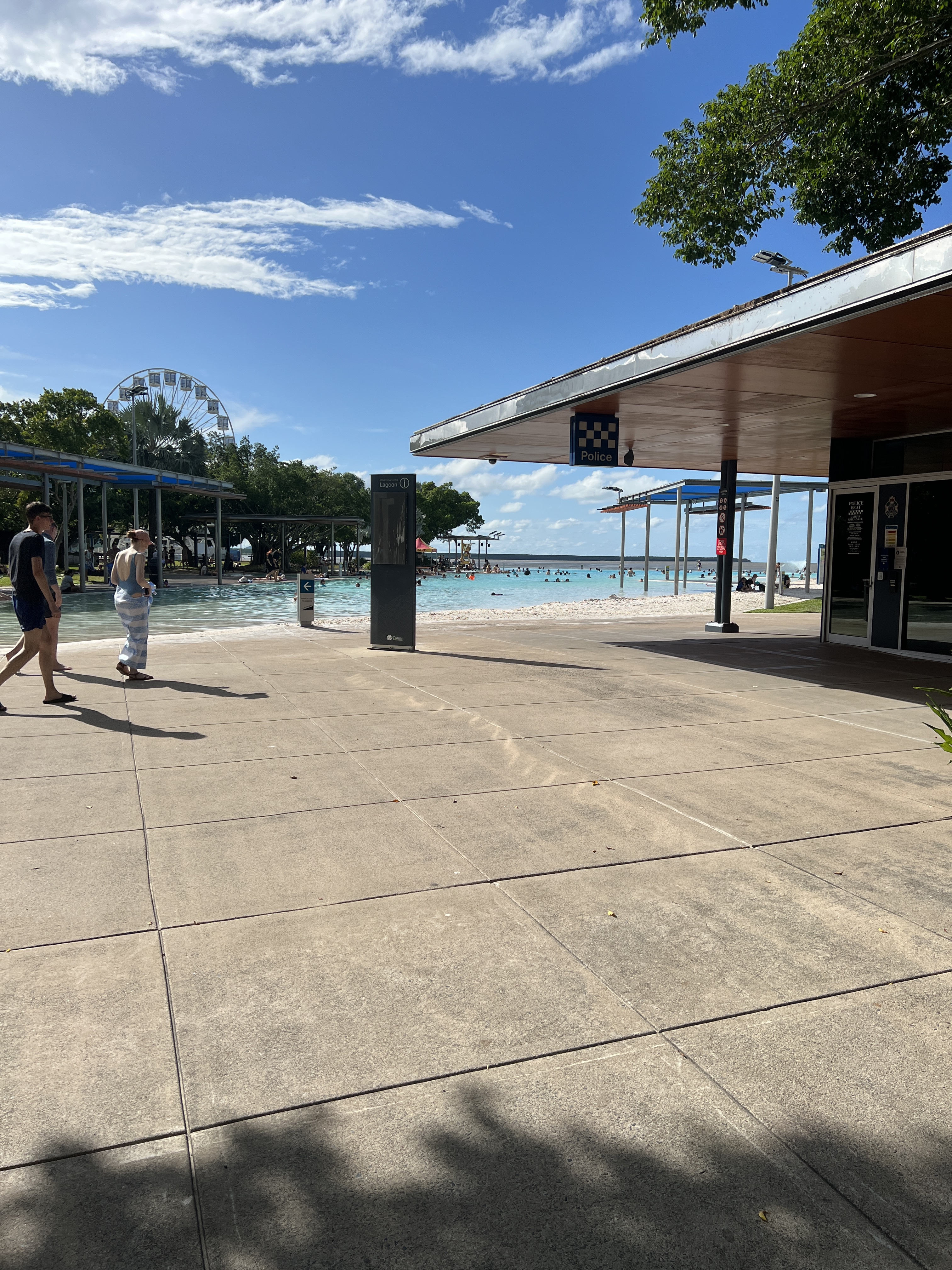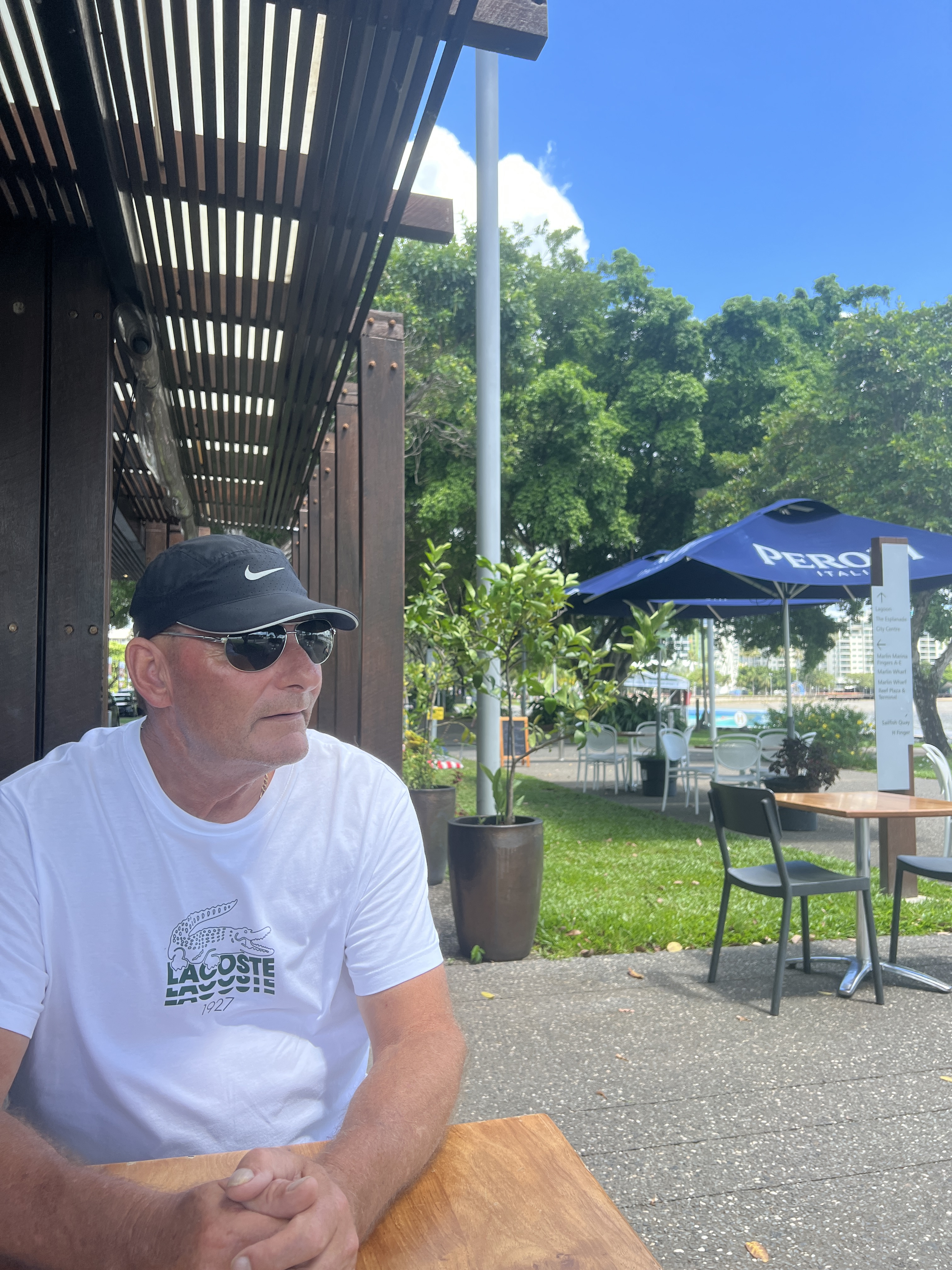 As Karen and Dave are now locals one weekend afternoon we all ventured to Muddy’s on the Cairns esplanade. This is a playground and water park provided free of charge surrounded by lush green grass and a lagoon pool. The council maintains it and there is a strong police presence so that it is a popular and safe place for families to congregate. There is also an awesome cafe/restaurant. We went for an early dinner and enjoyed smoothies, burgers, halloumi fries and fresh juices. Logan ran off some energy in the playground and then splashed around in the water park. We sat overlooking the mud flats of the Cairns waterfront while the tide was out. Ray and Dave popped over to one of the hotels for a beer and Karen and I kept an eye on Logan while we talked. The time slipped away.