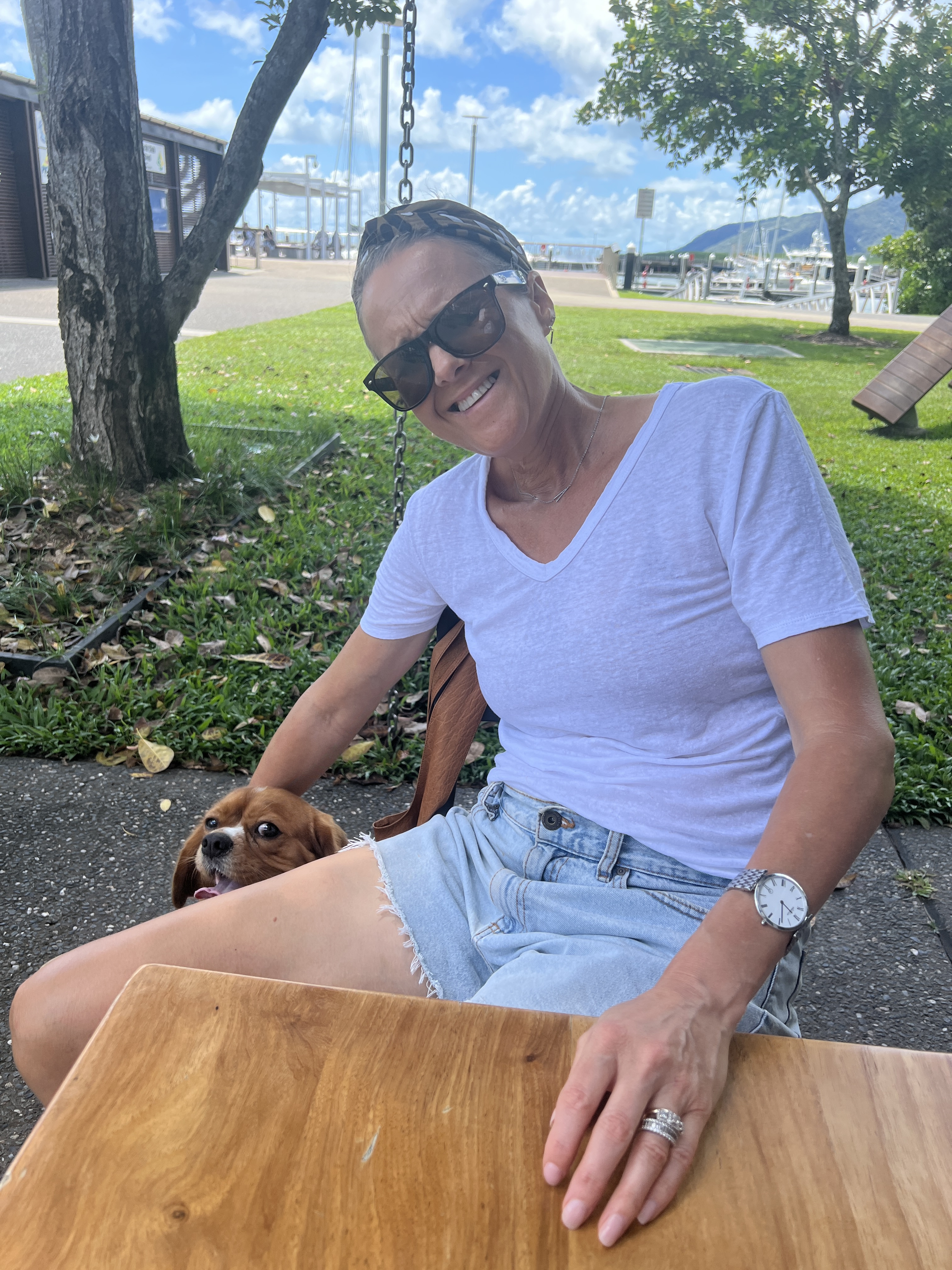 Dave had made reservations for lunch at the Port Douglas Yacht Club. We spent a very pleasant few hours drinking and eating on the open decking overlooking the Marina. It was very warm, Henry finding being outside all day pretty difficult, but we made sure he had plenty of water and shade and he splayed out underneath the table. This didn’t stop the pats though. They kept coming to him.