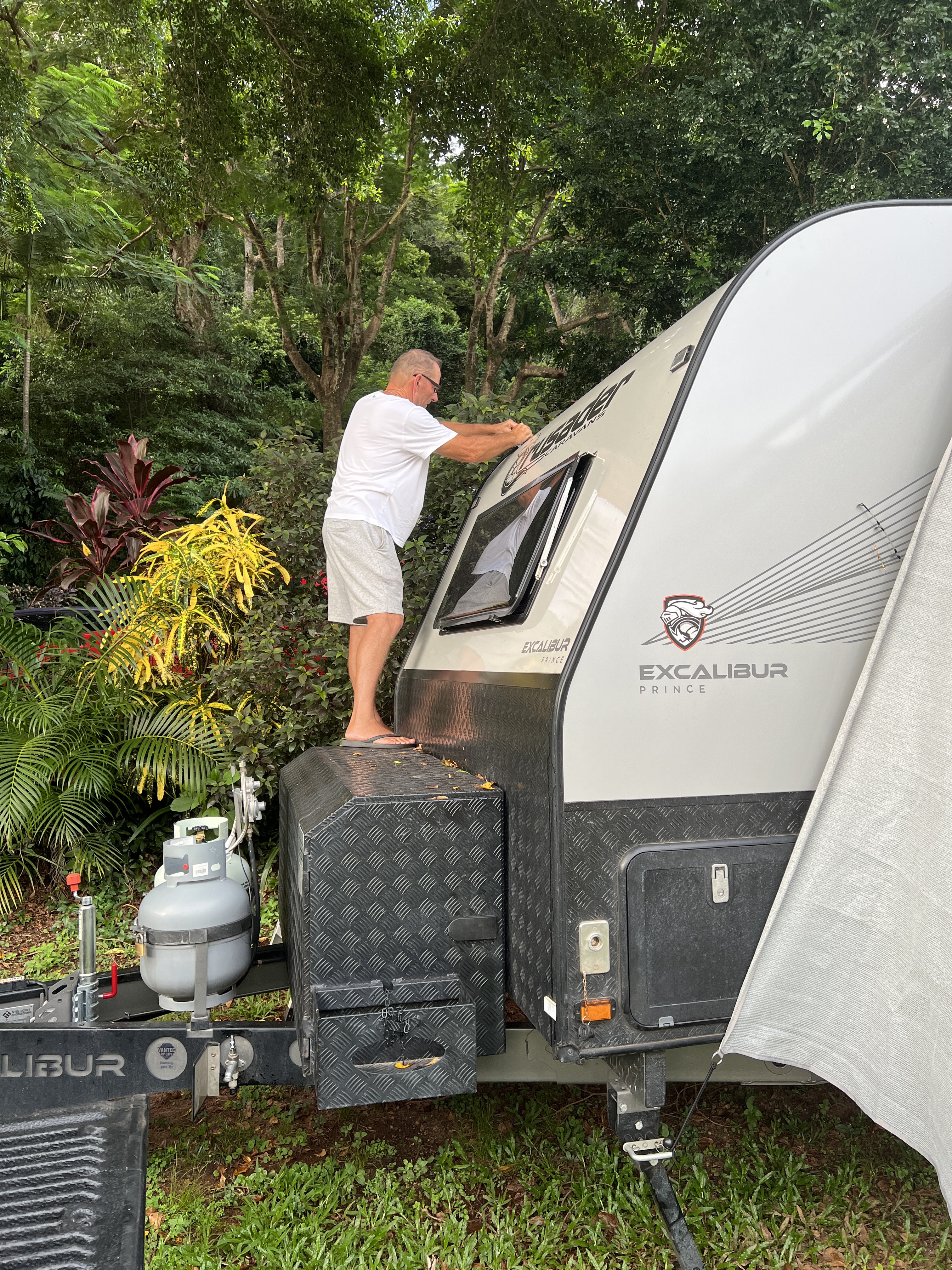 Ray’s mate Anthony and his family have also moved up here. They have moved to Innisfail and have literally just moved in. A few days ago. They were keen to go to the Kurunda markets and they are always good for a visit so we decided on a catch up there. It was a steamy, hot day walking through the stalls looking at all the artisan wares and huge displays of crystals and rocks. The original markets are still there from 1978 and have been extended and added to. Ray and Henry and the kids went into a fairy cave owned by Fairy Jenna and did the fairy hunt. Henry loved it because he didn’t have to bend over like Ray did.