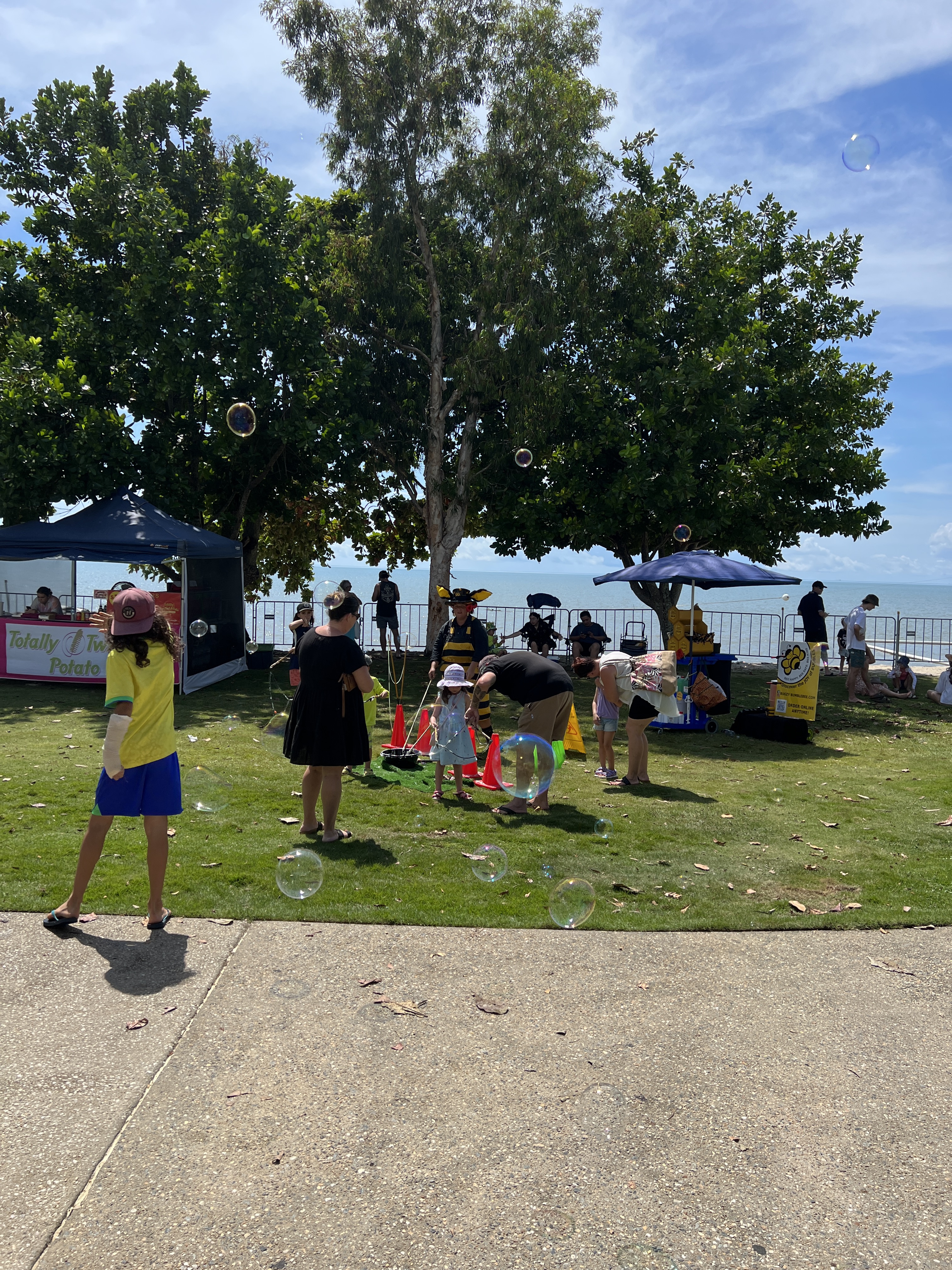 We kept losing Karen to parents and students she bumped into (a part of working in the local area and such a nice event for students to see their teacher out of the classroom on the weekend). The morning was warm and deliciously tropical. The palm trees swayed on the breeze on the foreshore and we realized that we still had a 35 minute drive to Port Douglas to come and that we had better get going.