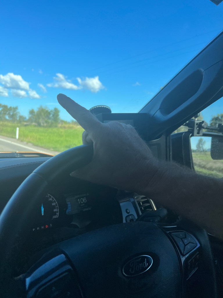 We had packed up a lot of the extra things that needed to be stowed last night so we could get away early this morning. Today we had to travel our biggest day yet, as we were aiming for Airlie Beach. Normally this would keep us in the car for 6.5 hours but it never worked out like that. There were always delays.
