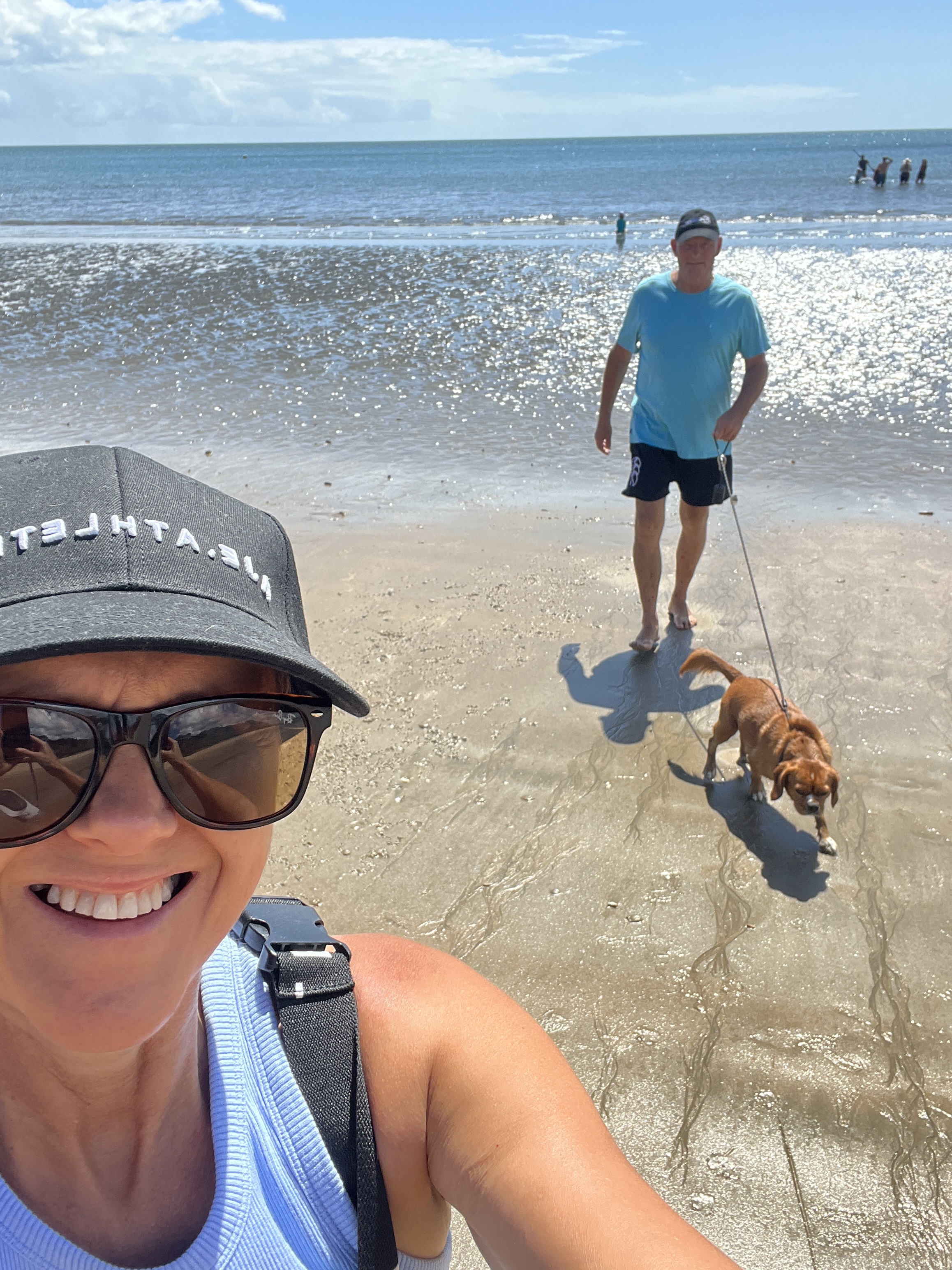 Ray was desperately hungry after a failed donut attempt and all this talk about jam and chocolate, so we really needed to find a cafe. We went to Aqua View which ,as the name suggests, is right on the beach and has a view of the water. Being so close to the water, there was a lot of bird life which continues to be a challenge for Henry. He doesn’t understand that he will never catch one, and that it is not polite to try. As he is always tethered in a café, he generally takes the leg of a chair for a ride or someone’s arm for a ride. This isn’t helping recovery of sore shoulders very much and I’m wondering why he’s just not learning. It must come down to beagle instinct.