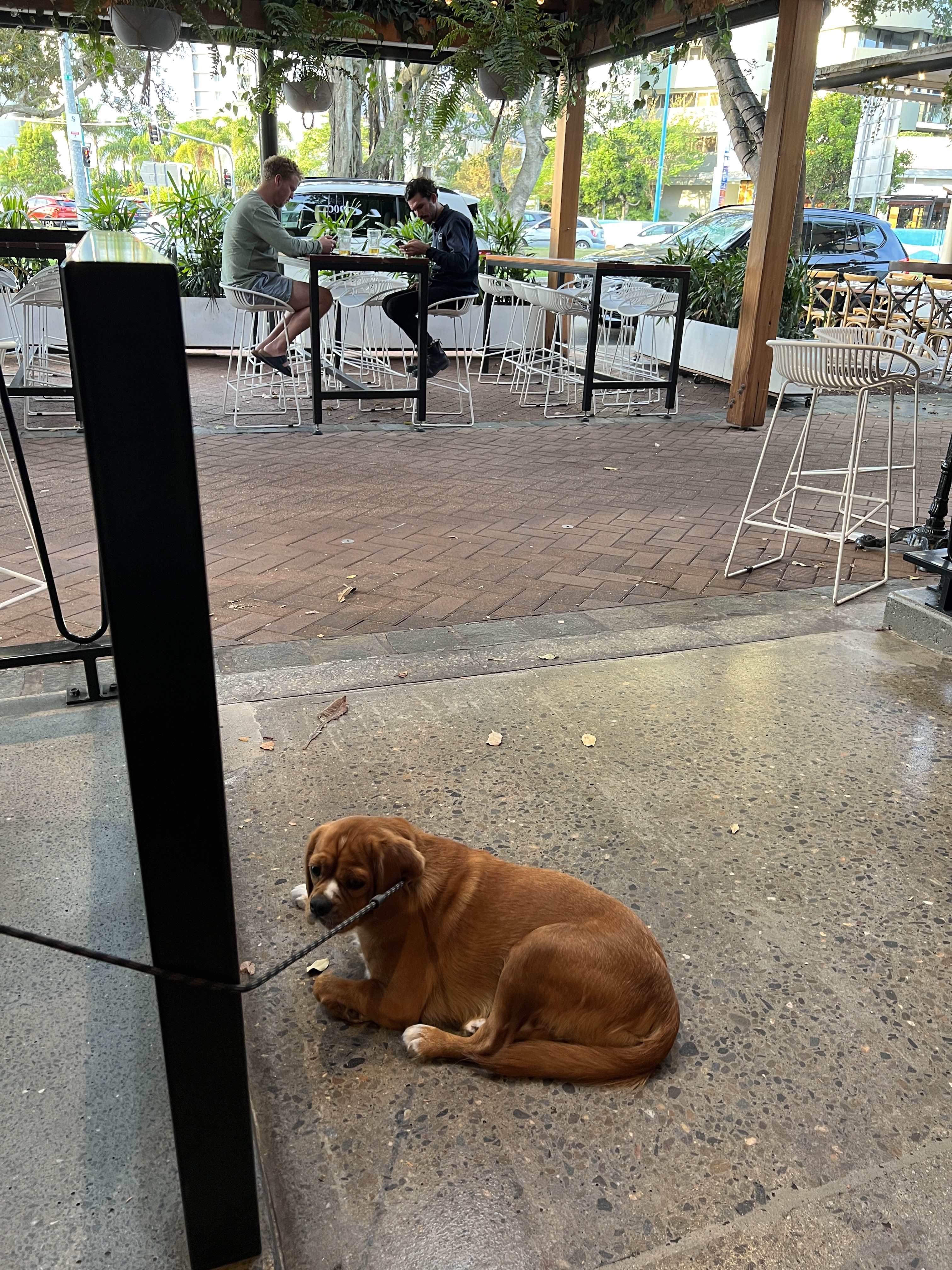 We met up with the guys who had taken Henry for a walk along the Coolangatta foreshore. Ray wanted to look at some real estate so we checked out the agents there too. It was definitely time to eat so we left it up to Ray to guide us to a suitable eatery. Karen and I spotted the plush looking cushions on the sofas and gave a quick glance over the menu and declared it ok. We settled and ordered.